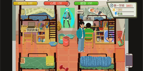 解决温饱: 首先确保“饥饿”和“疲劳”值在安全范围内。按时去食堂吃饭,钱不够就去兼职;困了就回宿舍睡觉,不要硬撑。