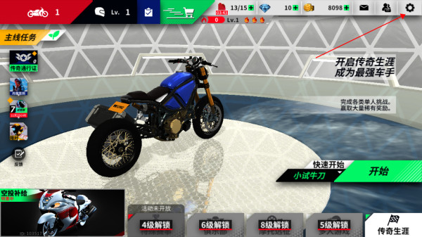1、进入游戏首页,找到设置图标;