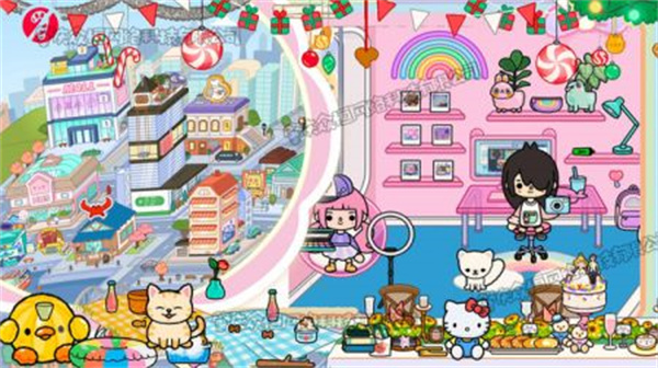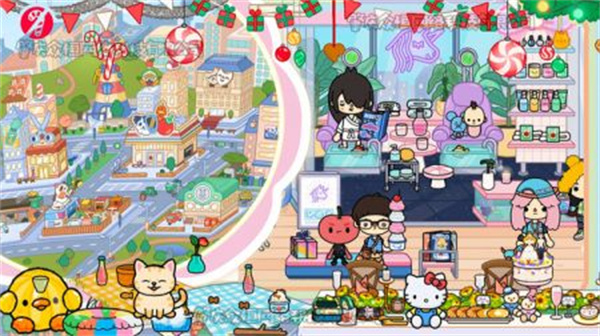 2、可以自由探索游戏中的各种场景,如医院、水族馆、游乐园、服装店、幼儿园。