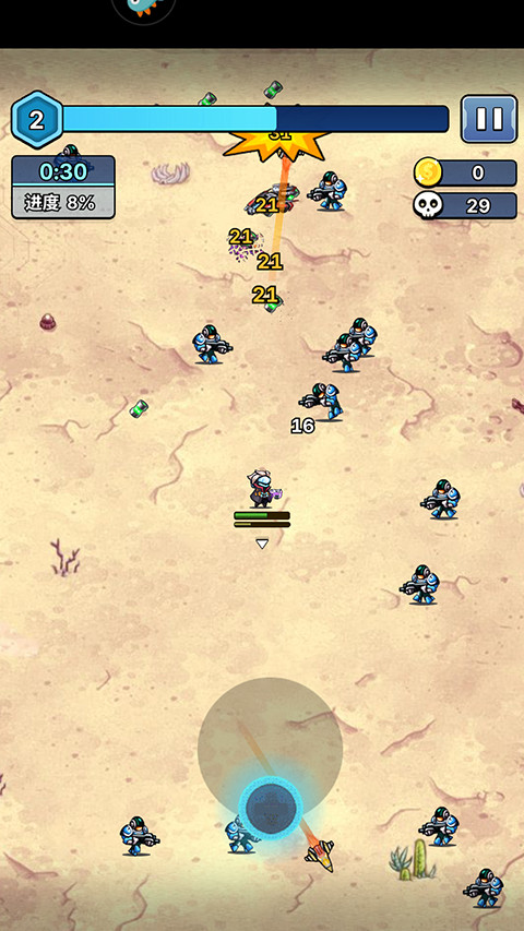 星海幸存者是一款趣味休闲的割草冒险游戏,玩家将操控角色快速获得超能力,从被怪物追逐的逃亡者,化身割草机,在敌群中肆意穿梭、瞬间清屏,享受碾压式的战斗快感。游戏中玩家可以通过获取和升级各种范围大、效果炫酷的技能,对潮水般涌来的敌人进行大范围、高效率的清剿,灵活走位来躲避攻击,实现效率最大化。游戏节奏快、操作和打击感流畅,能让玩家释放压力。
