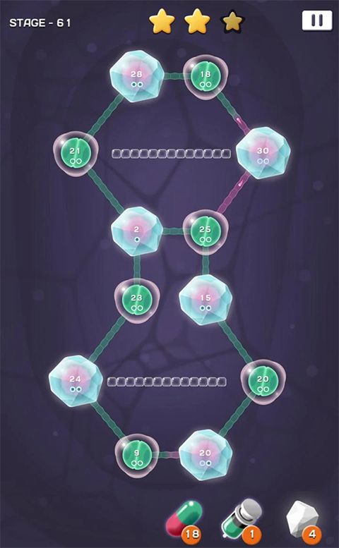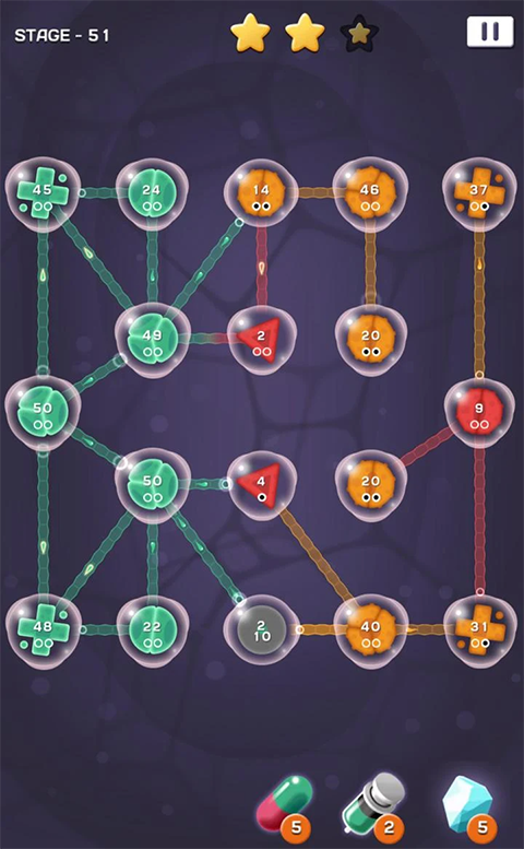 一部分关卡需要你主动放弃母细胞,利用②强行夺取一些子细胞作为“新阵地”,“卧薪尝胆”,最后成长起来了再攻回去。