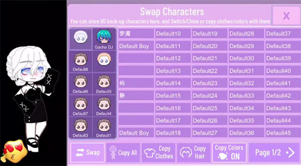 3、你可以更换人物的衣服,头发等;