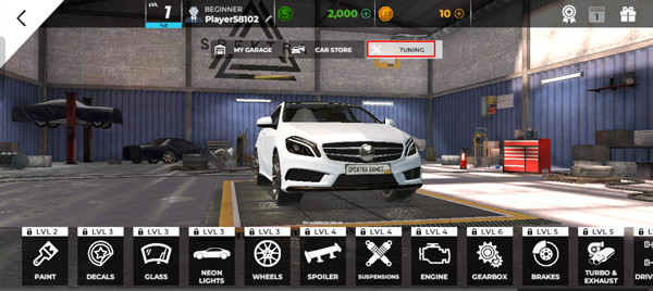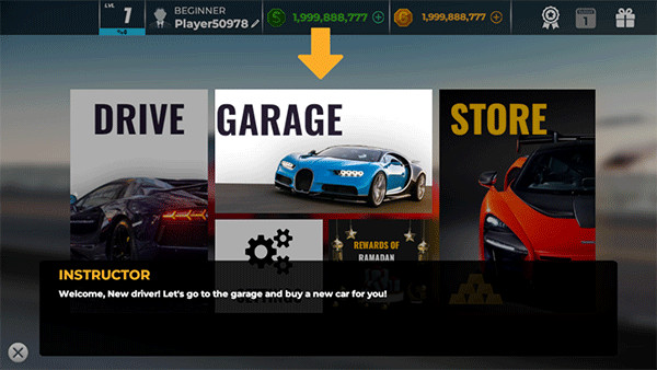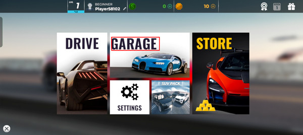 1、下载游戏后进入游戏大厅,根据游戏提示点击GARAGE进行冒险。