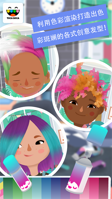 5、颜色:准备好染色了吗?Toca Hair Salon 3 引进了一款更高级的头发染色工具,这种工具使用两种不同的容器装盛不同尺寸的喷雾器。而且,全新的彩虹喷雾器可以让你随心所欲地喷染出色彩斑斓的梦幻发型!