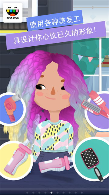 托卡生活发廊3是一款托卡生活系列的理发美妆模拟经营游戏,玩家将化身小小理发师,在一个充满童趣的发廊中为顾客提供全方位的造型服务,可以随心所欲地使用各种美发工具,如剪刀、染发剂和卷发棒等,为顾客设计发型、搭配服饰和妆容等。游戏内的头发物理效果真实,剪发时会有真实的长度变化,卷发棒烫出的卷发棒富有弹性,可以沉浸式体验真实的理发过程。