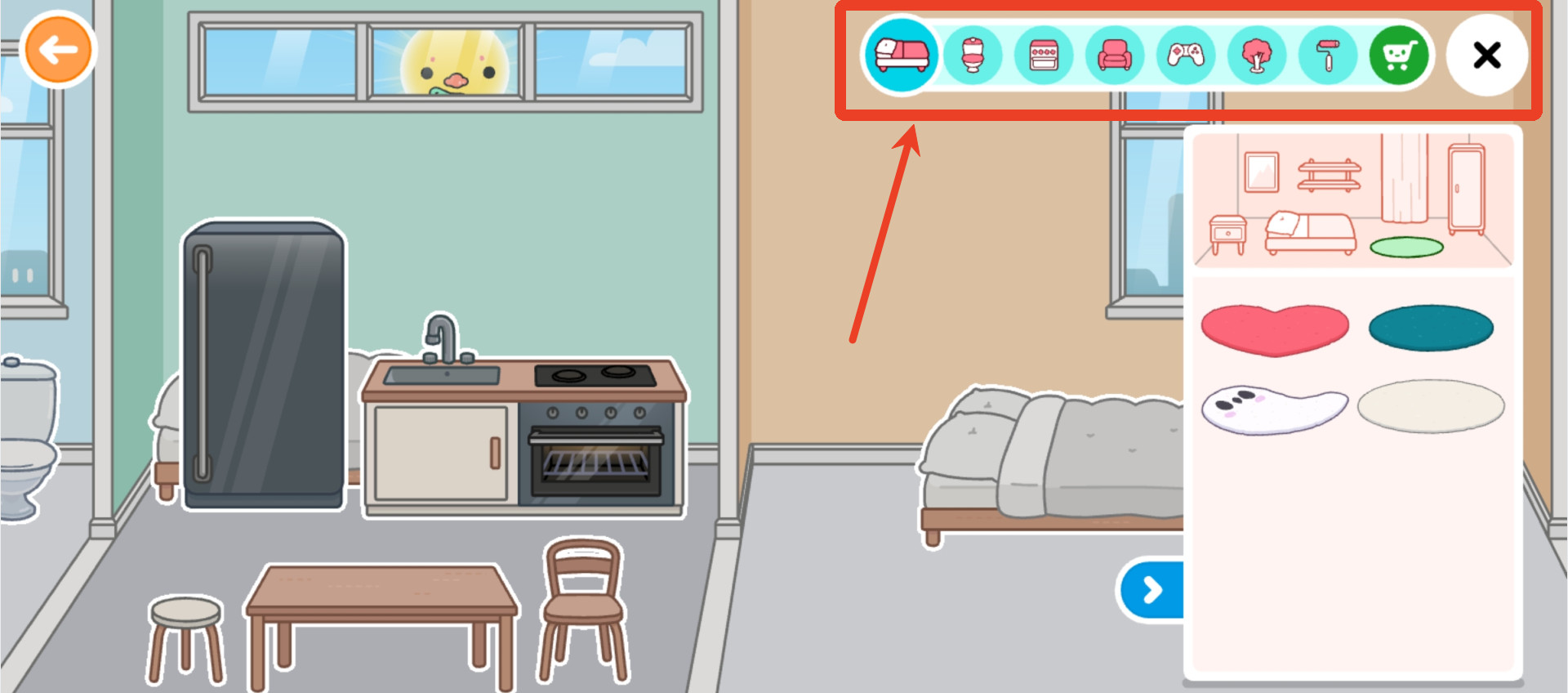 5、又或者点击左上角的退出房间按钮,去到自己的家中,可以看到也有很多小朋友,点击任何人物或者物品都可以移动。