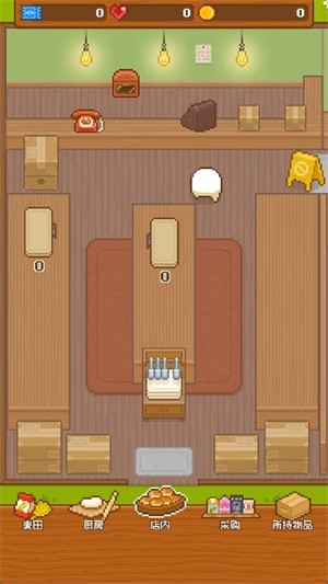 5、出售面包可以获得金币,点击采购按钮可以消耗金币来购买不同的配料制作面包。