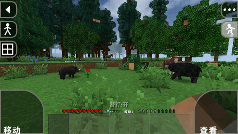 6.在游戏中可自由操控角色进行移动和建筑建造,点击右上角视角切换图标调整观察角度