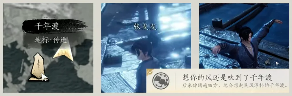 在千年渡界碑与张友友对话拿到动作见鸟飞,并在他面前施展即可完成成就想你的风还是吹到了千年渡