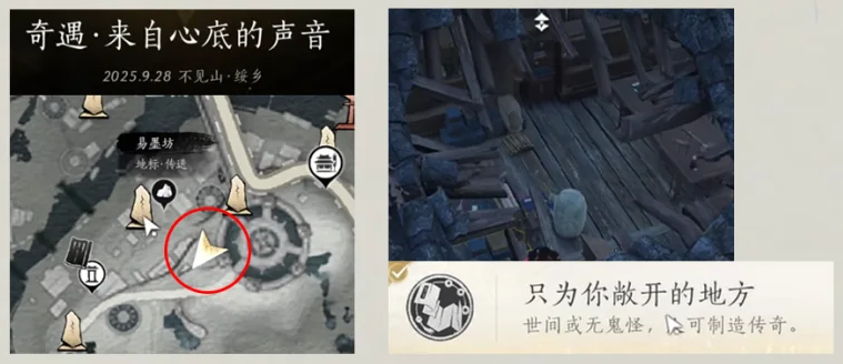 完成来自心底的声音后传送易墨坊来到这个位置,从屋顶跳进去,即可完成成就只为你敞开的地方!