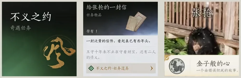 完成奇遇不义之约将任务道具张抢的信交给张抢完成成就金子般的心!(劝善)