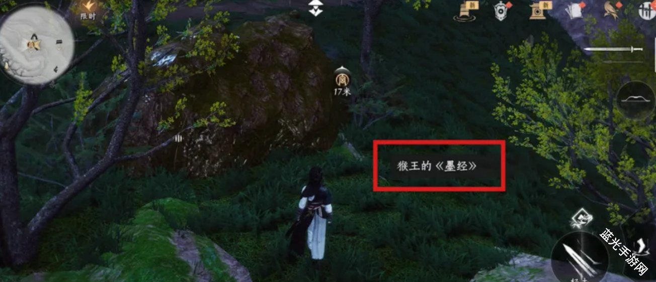 猴王的墨经在石头旁边,找不到可以使用听风辩位