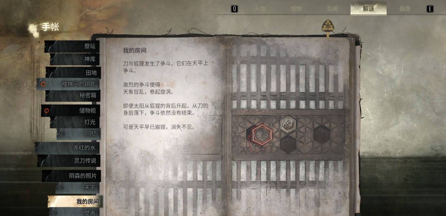 找到三枚纹章后,放在第一个区域雏子房间门前
