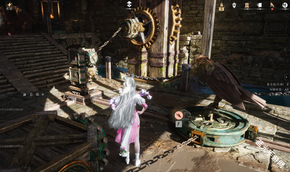4、先将机关顺时针移动两次,再将绳索链接,注意区分上下