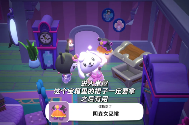 2、进入鬼屋,宝箱中的【阴森女巫裙】可以拿取