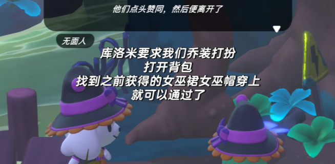 9、酷洛米要求乔装打扮,打开背包找到宝箱中拿取的【阴森女巫裙】穿上即可通过