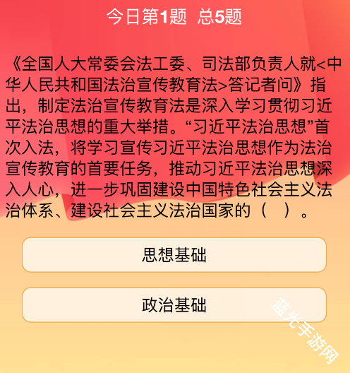 1、《全国人大常委会法工委、司法部负责人就<中华人民共和国法治宣传教育法>答记者问》指出,制定法治宣传教育法是深入学习贯彻习近平法治思想的重大举措。“习近平法治思想”首次入法,将学习宣传习近平法治思想作为法治宣传教育的首要任务,推动习近平法治思想深入人心,进一步巩固建设中国特色社会主义法治体系、建设社会主义法治国家的( ) 。