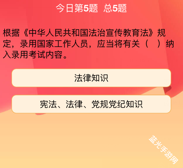 5、根据《中华人 民共和国法治宣传教育法》规定,录用国家工作人员,应当将有关( ) 纳入录用考试内容。