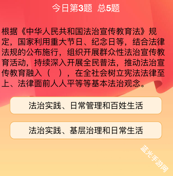 在微信中可以搜索中国普法,关注后点击右下角齐参与的法治宣传教育答题,从11月1日至11月30日每天都可以参与答题。每天答对5道题,累积7天答对都可获得证书,可参与抽50元元话费,共1500名,分三批抽取,下方是具体的青少年法治答题11月5日的答案内容!