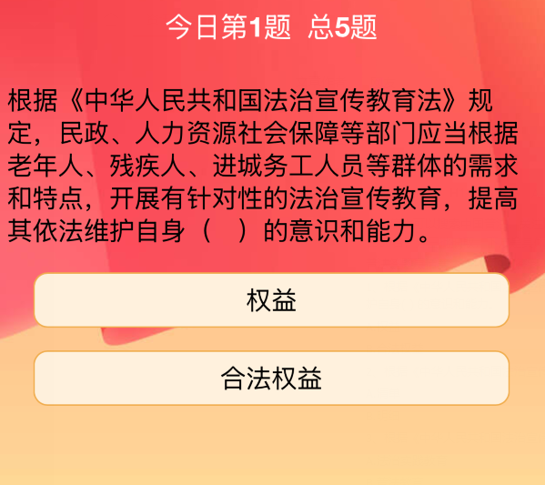 在微信中可以搜索中国普法,关注后点击右下角齐参与的法治宣传教育答题,从11月1日至11月30日每天都可以参与答题。每天答对5道题,累积7天答对都可获得证书,可参与抽50元元话费,共1500名,分三批抽取,下方是具体的青少年法治答题11月9日的答案内容!