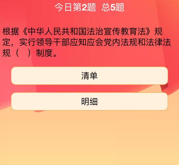 2、根据《中华人民共和国法治宣传教育法》规定,实行领导干部应知应会党内法规和法律法规()制度。
