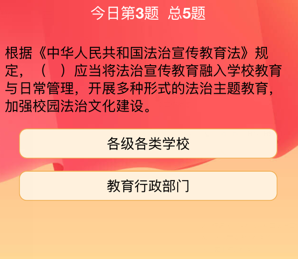 3、根据《中华人民共和国法治宣传教育法》 规定,( )应当将法治宣传教育融入学校教育与日常管理,开展多种形式的法治主题教育,加强校园法治文化建设。