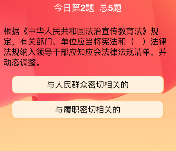 2、根据《中华人民共和国法治宣传教育法》规定,有关部门、单位应当将宪法和( )法律法规纳入领导干部应知应会法律法规清单,并动态调整。