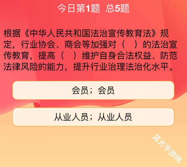 1、根据《中华人民共和国法治宣传教育法》规定,行业协会、商会等加强对( ) 的法治宣传教育,提高( ) 维护自身合法权益、防范法律风险的能力,提升行业治理法治化水平。
