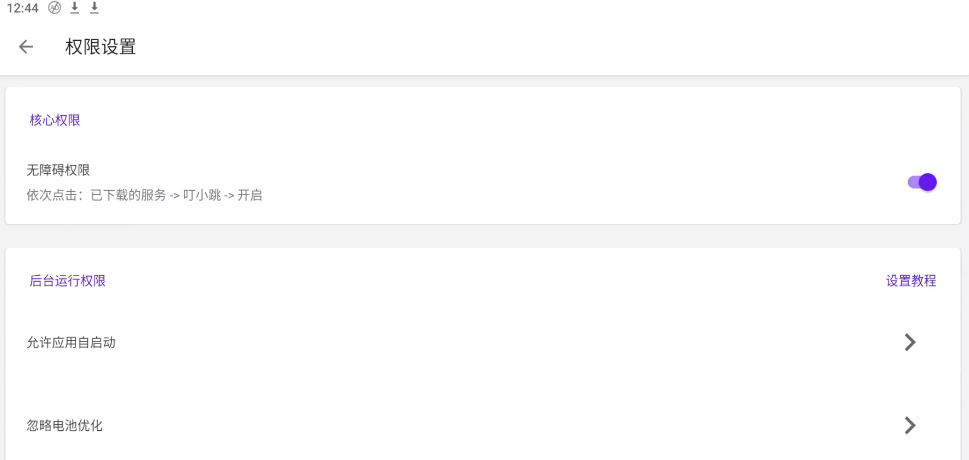 3、开启其中无障碍权限和后台运行权限