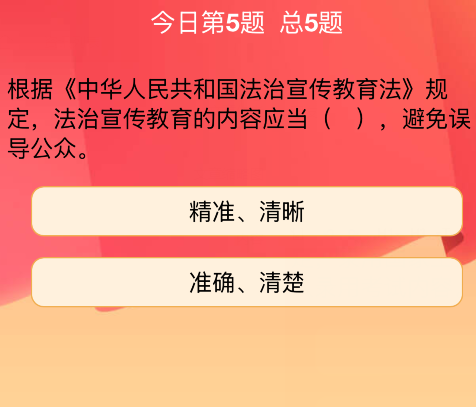 5、根据《中华人民共和国法治宣传教育法》规定,法治宣传教育的内容应当( ),避免误导公众。