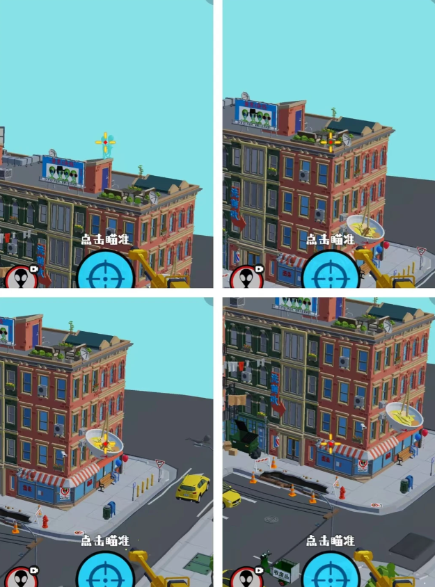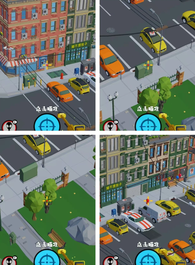 狙击外星人游戏中需要狙击当前游戏场景中所有的外星人,找到这些隐藏在各个角落区域中的外星人,并一一进行狙击即可。下文收集列举了第13关商业街中所有外星人的位置详情!