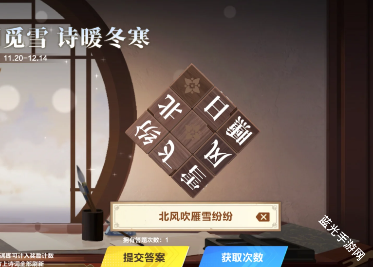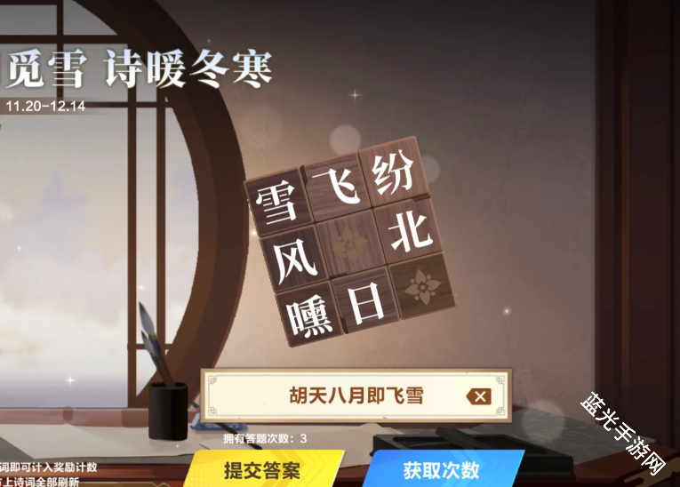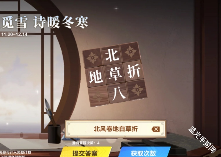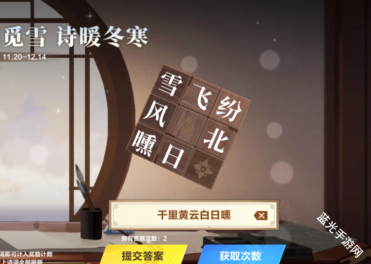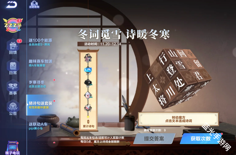 QQ飞车手游冬词觅雪诗暖冬寒猜诗句第五天答案