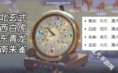 QQ飞车手游岁寒寻冬庄园立冬日晷任务中, 会有四个信物,拿到四个信物后回到活动处把这几个信物拖放到正确的位置即可获得明信片,石头的摆放顺序为北玄武、西白虎、东青龙、南朱雀,飞车可不按顺序放。