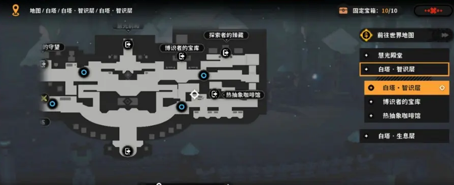 火环白塔智识层中有10个可获得的宝箱,在游戏里左上角的小地图也会有宝箱提示。下面整理了这些宝箱分布的位置区域内容详情!