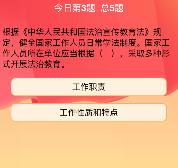 3、根据《中华人民共和国法治宣传教育法》规定,健全国家工作人员日常学法制度。国家工作人员所在单位应当根据( ), 采取多种形式开展法治教育。